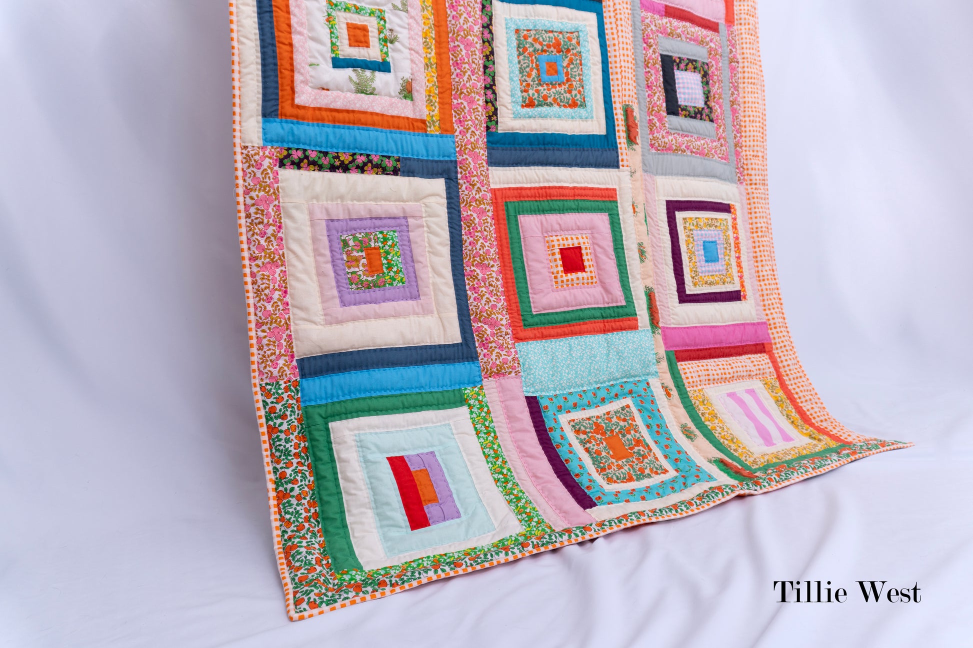 This quilt was made using Heather Ross’s Housetop No. 6 quilt kit, showcasing her playful and nostalgic fabric designs. It is constructed from 100% cotton fabric and thread, paired with a luxurious 100% wool batting. The wool adds warmth and lightness as it’s a premium natural material that creates a beautifully lofty and insulating finish.