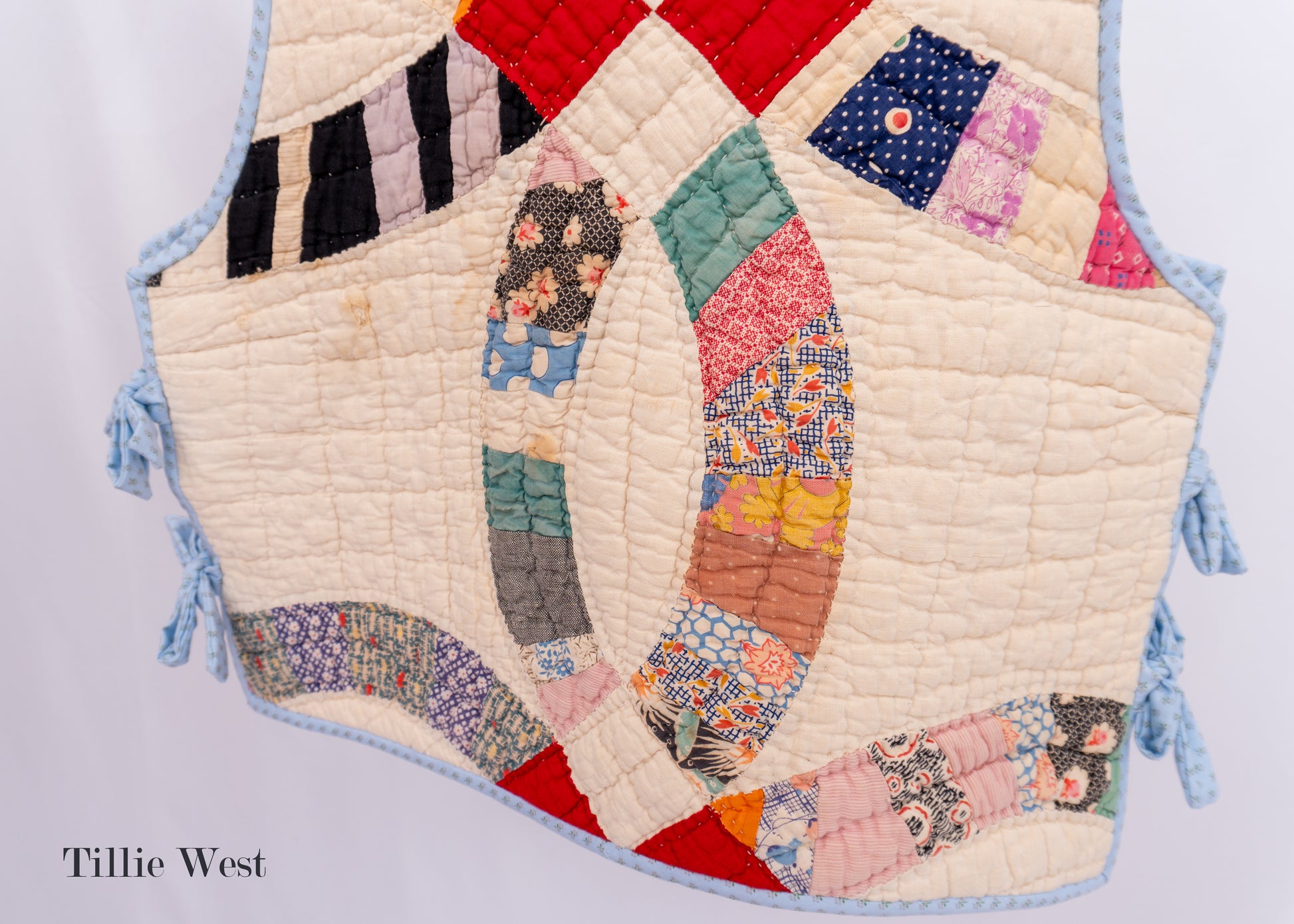 Every Double Wedding Ring block in this gilet tells a story, making it not just a garment but a wearable piece of textile history.